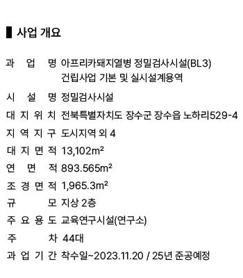 전북특별자치도 아프리카돼지열병 정밀검사시설(BL3)신축